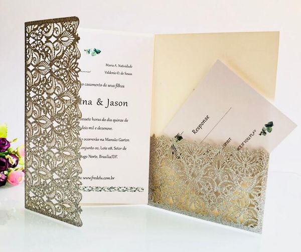 Luxury Champagne Gold Glitter Wedding Invitations Elegant Laser