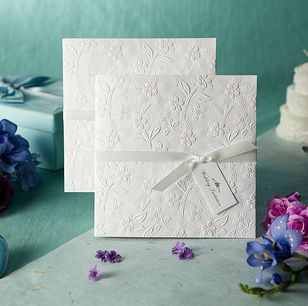 White Wedding Invitations Fashion Flower Satin Bow Pure Nature